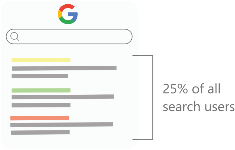 The top search result receives about 25% of all search users.